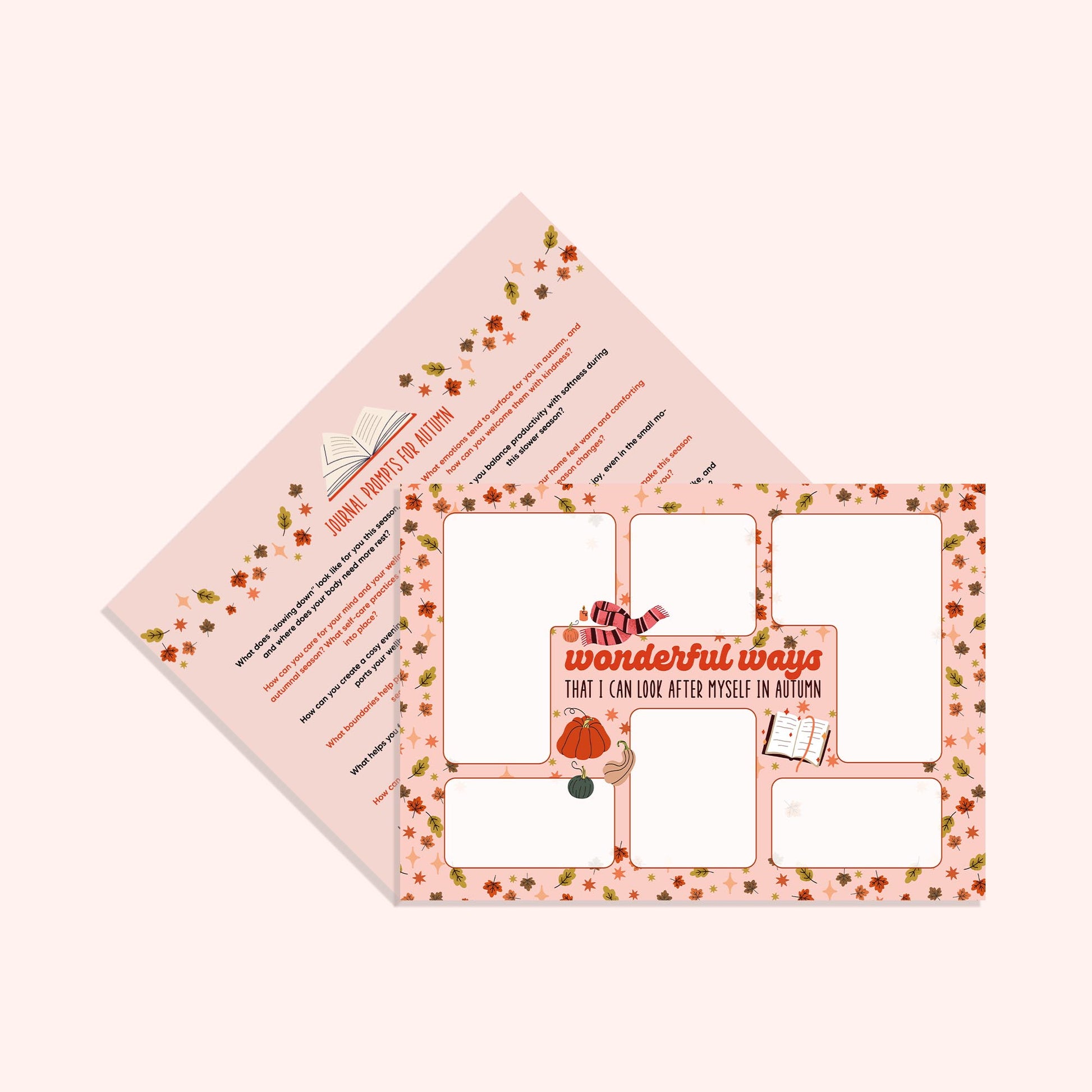 On the back of each journaling board you'll see guided prompts that will help inspire, uplift and motivate you to fill in your board with an abundance of self-care ideas, or if you fancy, an added bonus for your journal!
